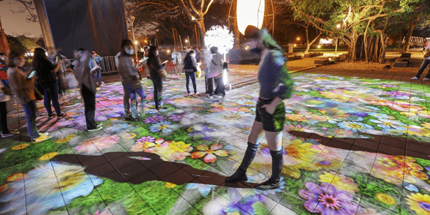 以絢麗投影與沉浸式光影技術打造獨特場域,營造全台最長的光影廊道。觀眾在步行穿越的過程中,彷彿置身於流動的光影劇場,不僅成為活動中吸睛的亮點,也能帶動社群話題與媒體關注。