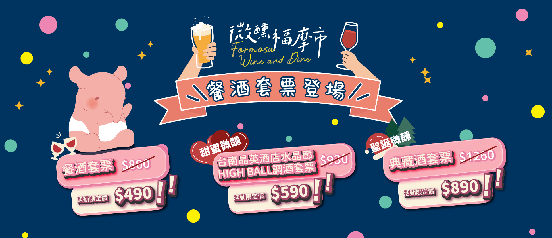 餐酒套票內含現金抵用券及贈品,還有價值萬元的住宿券抽獎活動,超值限定優惠只在微醺福摩市。
